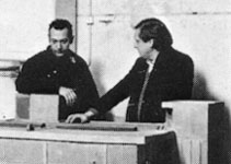 Aufstellung während der Ausstellung, In Bahnhofsnähe, zwischen Kino und Schnellimbiss findet das 3,5x5,7x4,1 m große, vierstöckige Haus aus bemaltem Plexiglas im Maßstab 1:5 seinen Platz. Architektonisch eingegliedert in die umliegenden Gebäude und dennoch eigentümlich in seiner Größe und seiner Mischung aus Unauffälligkeit, Vertrautheit und Witz ist es eine Ikone "mittelständiger Macht und Prachtentfaltung", so die Künstler in ihrer Konzeption 1987. Das Schweizer Team fiel zunächst auf durch kunterbunte Schaumstoffplastiken, die mit viel Bildwitz die Produkte des Kunstbetriebs sozusagen als große Kuscheltiere oder Fabelwesen des Kitsches karikierten. In einer Baulücke zwischen einem Kino, ganz Bautyp der 50er Jahre, und einer Würstchenbude, in diesem tiefen Sprung zwischen zweierlei Maß, verblüfft eine Mini-Architektur, die genauso aussieht wie ein riesiges funktionalistisches Verwaltungsgebäude, in den Dimensionen aber noch die der Bude unterbietet. Ein unbetretbares Sperrholzgehäuse mit Betonanstrich überzogen und mit Plexiglas-Fassaden ausstaffiert. Häßlicher, anonymer geht's nicht. Die uralte Methode der Parodie: etwas Einschüchterndes so klein machen, daß man darüber lacht. Kein Modell, oh nein: reine Attrappe. Text von Georg Jappe aus "Rundgang / Guide", Kurzführer 1987 In the beginning, the Swiss team attracted attention with motley foam rubber sculptures which with a lot of wit - caricatured the products of art "business" as being big cosy animals or fabulous kitschy creatures. In a vacant lot between a movie theater (typically fifties architecture) and a snack bar, in this contrasting jump between two different sizes stands an amazing mini-architecture which looks exactly like a huge, functional administration building, but in its dimensions it is even smaller than the shack. An unenterable shell coated with concrete and equipped with plexiglass windows: it could not be more ugly, more anonymous. The age-old method of parody: to make something intimidating so small that everybody laughs about it. No model, oh no: a real dummy. Text by Georg Jappe from "Rundgang / Guide", 1987 |